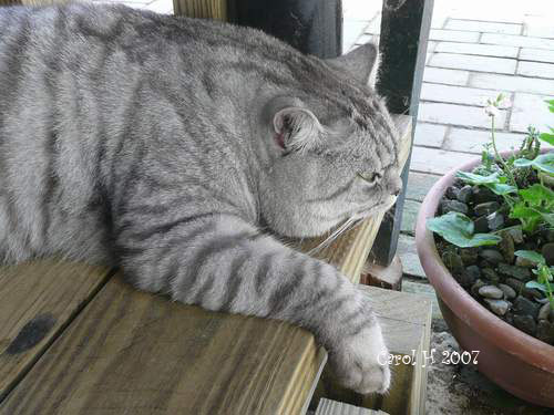 喝.....一隻灰灰的"龐然大物"趴在地上不動,